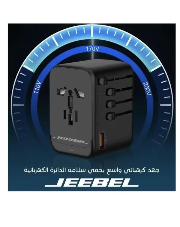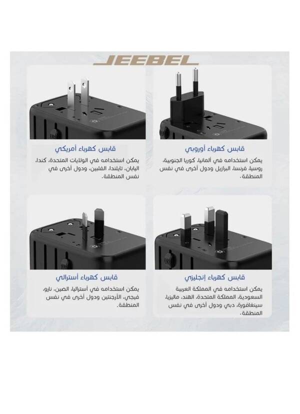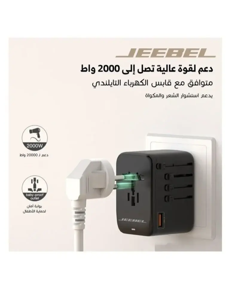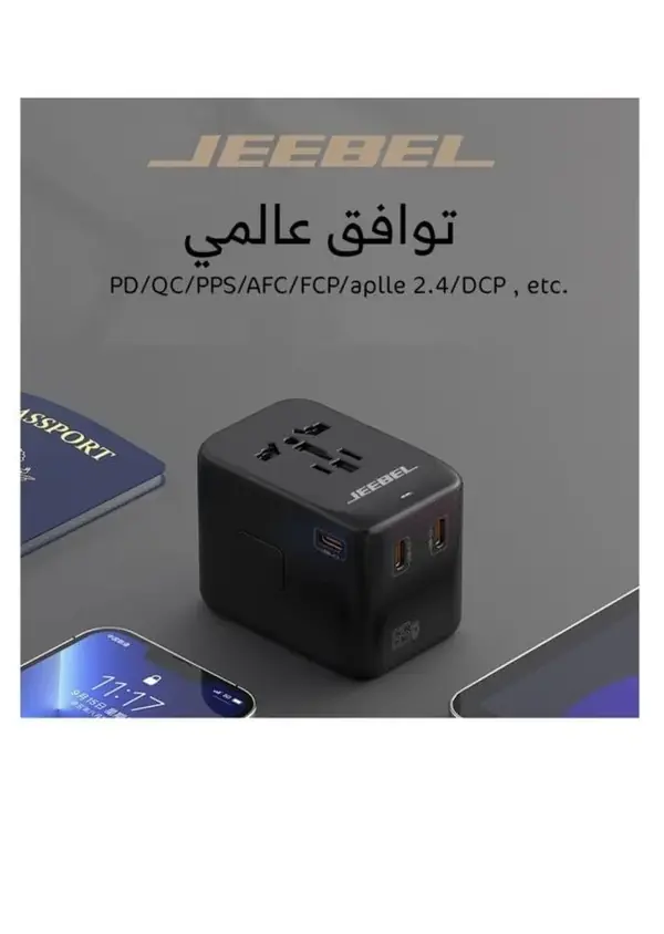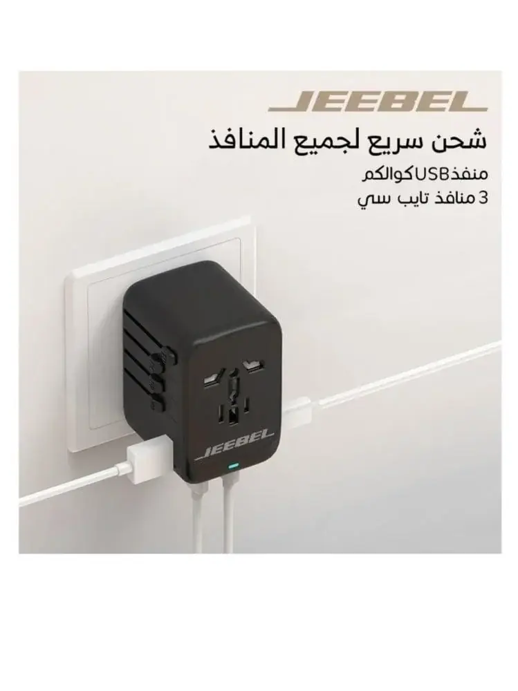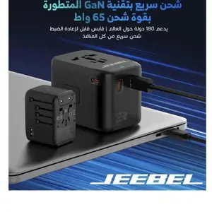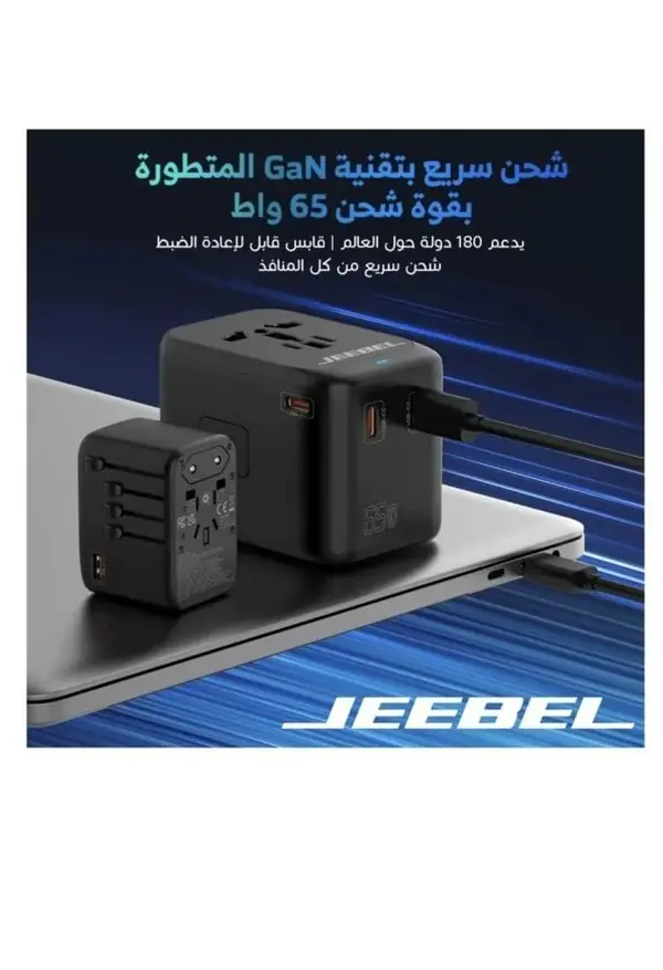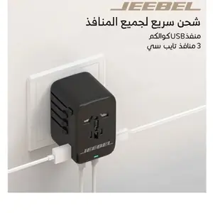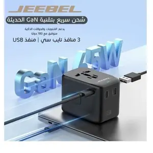 جيبيل شاحن سفر دولي متعدد المخارج بقوة 65 واط و 3 منافذ تايب سي ومنفذ USB