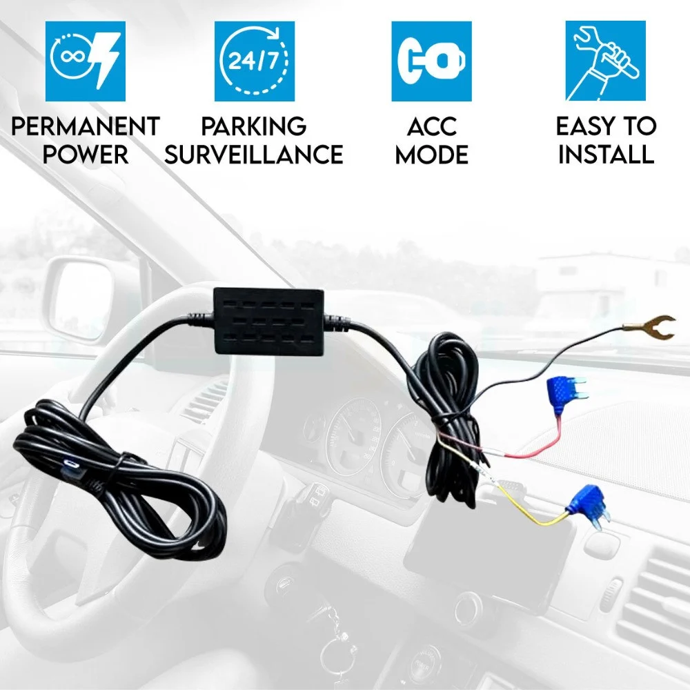 يمكنك مراقبة موقف سيارتك على مدار الساعة طوال أيام الأسبوع يوفر لك مصدر طاقة غير متقطع 24 ساعة لكاميرا لوحة القيادة ، للحماية من السرقة عندما تكون سيارتك في موقف السيارات.